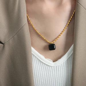This neckpiece features a stunning agate stone pendant, beautifully set in 18K gold-plated 304 stainless steel. The rich, earthy tones of the agate complement the luxurious gold plating, creating a sophisticated accessory perfect for any occasion.