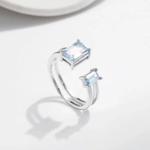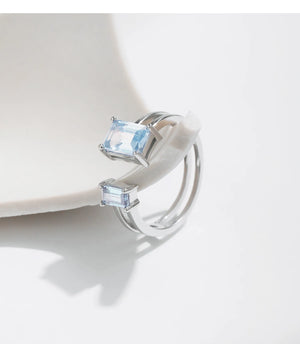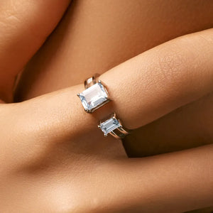 This message only appears in theme editor.Presenting our Blue Zircon Duo Ring, a stunning piece that combines vibrant color with modern elegance.