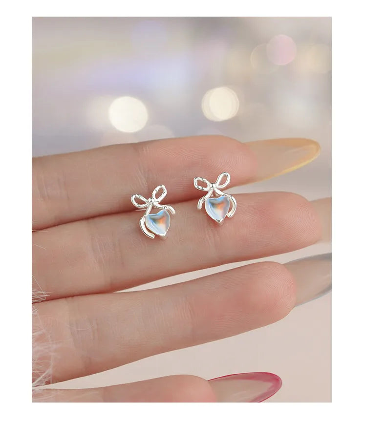 This message only appears in theme editor.Bow Moonheart Studs – Delicate Romance Meets Modern Elegance