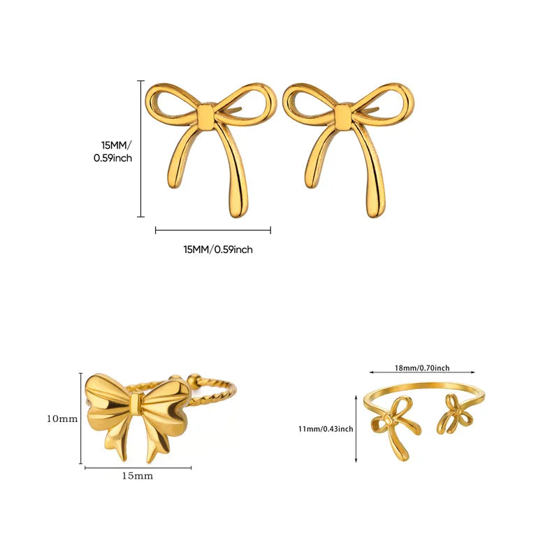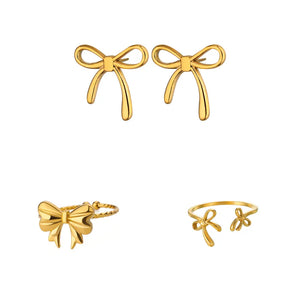 Bowknot 3 Pcs Rings & Earrings Set