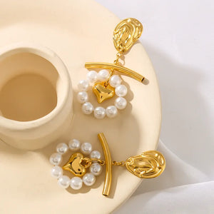 These earrings feature a classic drop design, plated with 18K gold over 304 stainless steel. The sleek and elegant style makes them a versatile piece suitable for both casual and formal occasions.