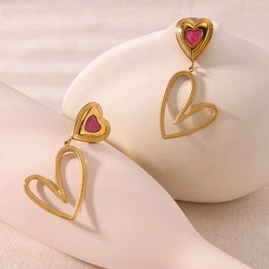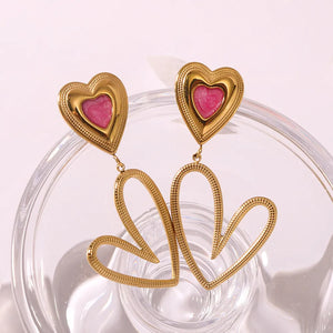 These earrings are crafted from high-quality stainless steel and plated with 18K gold, featuring beautifully shaped heart charms that dangle gracefully. The design is both timeless and trendy, making these earrings a versatile accessory for any occasion. Whether you're dressing up for a special event or adding a sweet detail to your daily look, the Dangling Heart Earrings are sure to become a favorite in your jewelry collection.