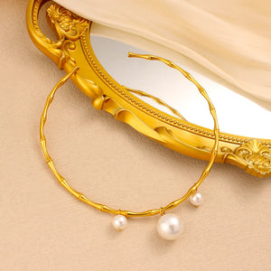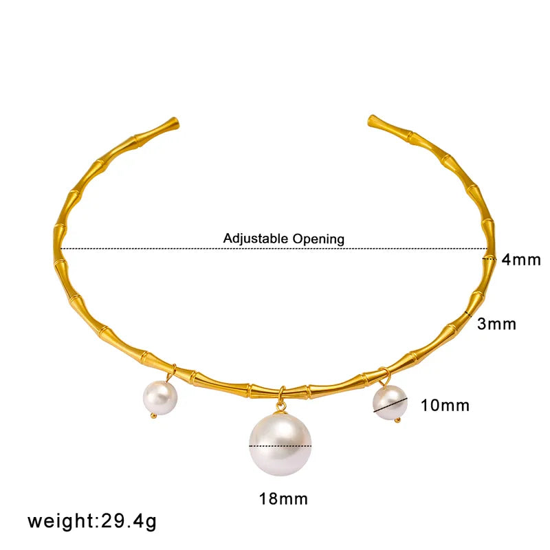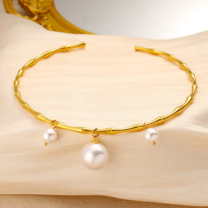 This message only appears in theme editor.Elevate your neckline with the natural elegance of the Bamboo Pearl Choker. This delicate piece features lustrous pearls strung alongside bamboo-inspired gold accents, creating a serene harmony of texture and shine. Designed to sit gracefully at the collarbone, it brings a soft, nature-kissed charm to any ensemble.