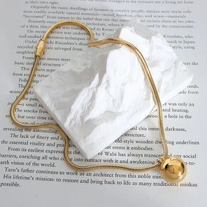 This message only appears in theme editor.Introducing our Gold Ball Neckpiece, a minimalist yet striking accessory that exudes understated elegance.