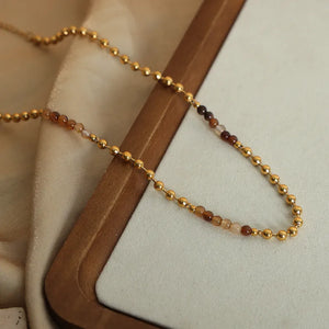 This neckpiece is crafted from high-quality stainless steel and plated with 18K gold, featuring a series of small, polished gold beads strung along a delicate chain. The subtle yet sophisticated design makes it perfect for layering with other necklaces or wearing on its own for a minimalist statement. Ideal for both casual and formal occasions, this Gold Beaded Neckpiece is a timeless addition to any jewelry collection.