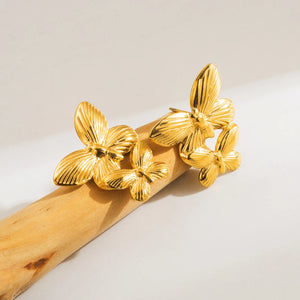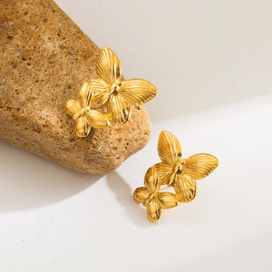 These studs feature intricate butterfly motifs, crafted from high-quality 304 stainless steel and plated with 18K gold. The detailed design and polished finish create a sophisticated look, perfect for adding a touch of natural charm to any outfit.