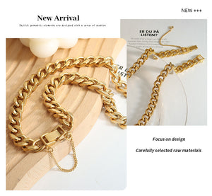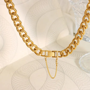 This neckpiece features a sleek chain design, crafted from high-quality 304 stainless steel and plated with 18K gold. The minimalist design and polished finish create a sophisticated look, perfect for adding a touch of refined style to any outfit.