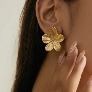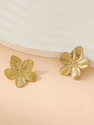 This message only appears in theme editor.Bold yet elegant, the Gold Chunky Flower Studs are designed for those who love statement pieces. Featuring a large floral motif, these studs are crafted with gold plating, making them perfect for any occasion.
