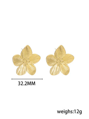 - Bold Floral Design: Features large flower-shaped studs in gold plating.