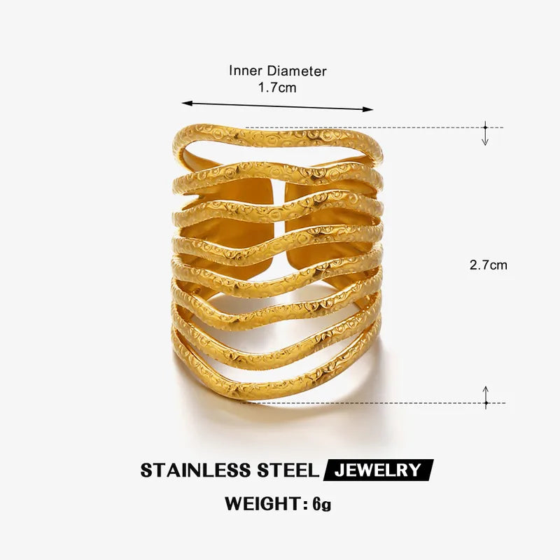 Make a statement of confidence and elegance with this Gold Chunky Lines Ring. Featuring bold, textured lines, this piece captures the perfect balance between modern edge and timeless sophistication.