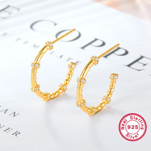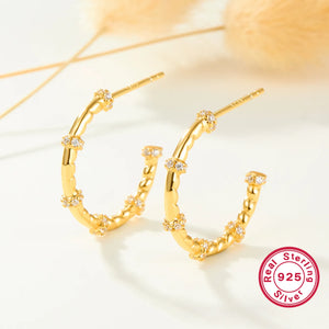 Crafted from high-quality stainless steel and plated with 18K gold, these hoops offer a sophisticated yet versatile design. The classic hoop shape ensures they remain a staple in your jewelry collection, perfect for both everyday wear and special occasions. Their polished finish and enduring style make them an essential piece that complements any look.