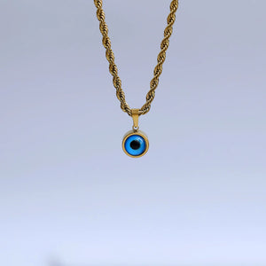 This message only appears in theme editor.A bold charm with a protective edge. The Gold Devil's Eye Neckpiece blends symbolism and style, featuring a striking eye-shaped charm believed to ward off negativity. Designed for those who love edgy elegance, it’s a standout accessory for layering or making a statement.