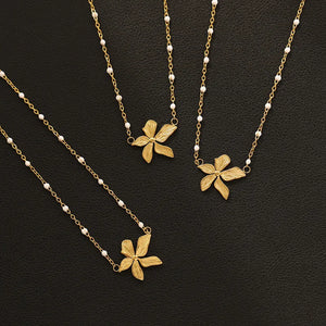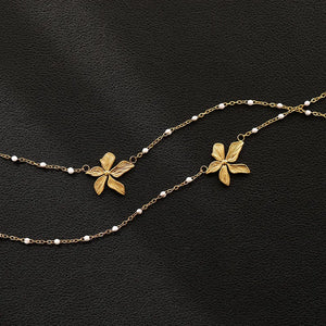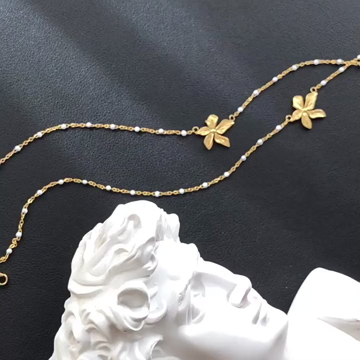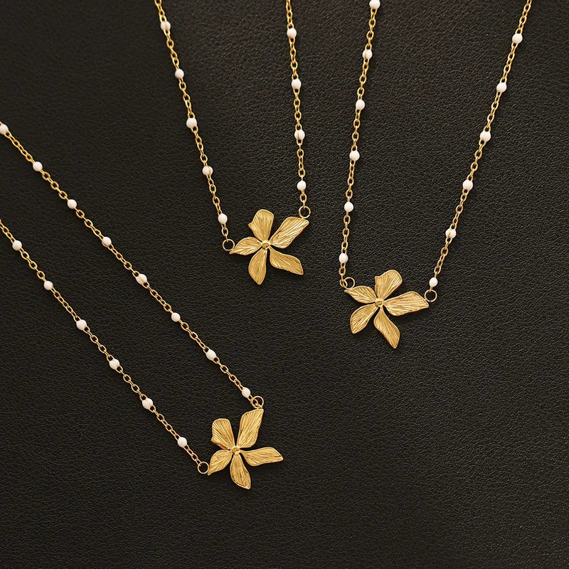 This message only appears in theme editor.Gold Flower Chain Neckpiece Elevate your everyday elegance with this refined gold flower chain neckpiece. Featuring an intricately designed floral-inspired chain, this versatile piece transitions seamlessly from casual to sophisticated occasions. The graceful botanical motif adds a touch of femininity and charm, while the durable gold construction ensures lasting wear. Perfect worn solo for understated sophistication or layered with complementary pieces to create a personalized, curated look. A timeless addition to any jewelry collection.