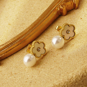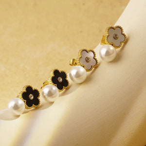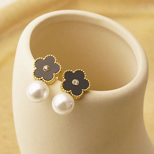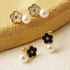 This message only appears in theme editor.The Gold Flower Drop Studs are a chic blend of monochrome beauty and floral charm. Featuring gold-plated flower motifs with contrasting black or white accents, these earrings bring a refined and modern touch to your look.