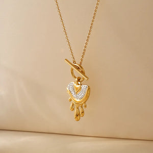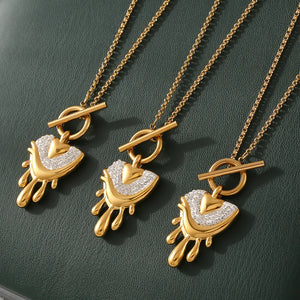 This message only appears in theme editor.A romantic and artistic expression, the Gold Melting Heart Neckpiece features a heart-shaped charm that appears to be melting into the chain. This gold-plated neckpiece is a beautiful symbol of love and creativity.