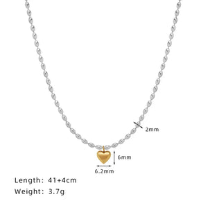 Crafted from high-quality stainless steel and plated with 18K gold, this neckpiece features a petite heart pendant that offers a subtle yet sophisticated statement. The minimalist design and gleaming finish make it an ideal choice for everyday wear or for adding a hint of romance to special occasions. The Gold Mini Heart Neckpiece is perfect for layering or wearing alone, making it a versatile and cherished addition to your jewelry collection.