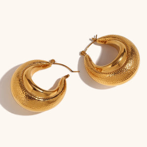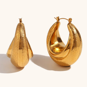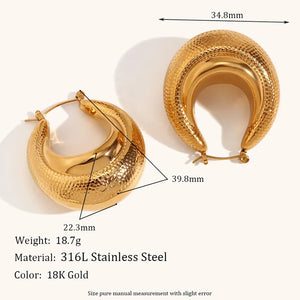 These hoops feature a unique U-shaped hollow design, meticulously crafted from 18K gold-plated 304 stainless steel. The bold yet minimalist style adds a contemporary touch to any look, making these hoops a must-have for those who appreciate chic simplicity.