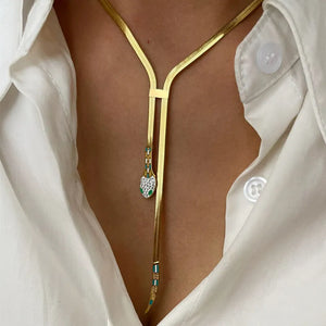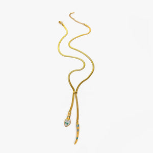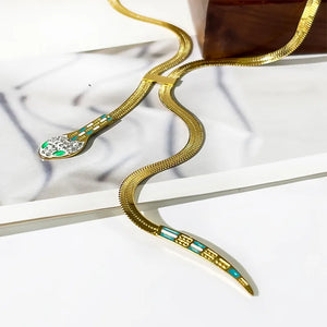 - Symbolic Design: Snake-shaped pendant on a gold-plated chain.