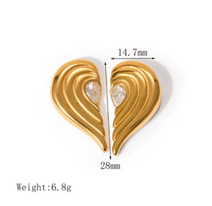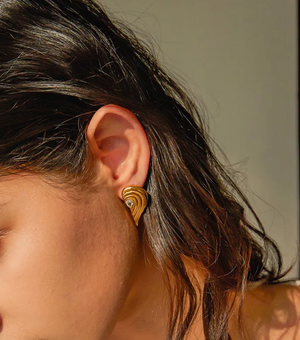 Crafted from high-quality stainless steel and plated with 18K gold, these studs feature a sleek half-heart design that adds a touch of modern sophistication to any outfit. The simple yet striking shape makes these earrings a versatile choice, perfect for everyday wear or special occasions. The polished finish enhances their refined look, making the Half Heart Studs a timeless addition to your jewelry collection.