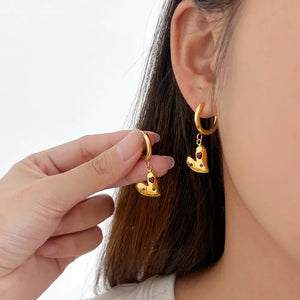 These earrings feature delicate heart-shaped rhinestones, set in high-quality 304 stainless steel and plated with 18K gold. The sparkling rhinestones and romantic design create a sophisticated look, perfect for adding a touch of glamour to any outfit.