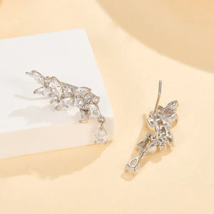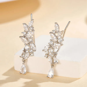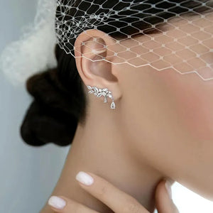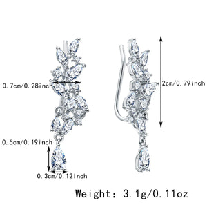 These ear cuffs feature a beautifully crafted leaf design adorned with water droplet-shaped zircon stones, creating a dazzling display of elegance and sophistication. The unique cuff style ensures a comfortable and secure fit, making them a standout accessory for any occasion.