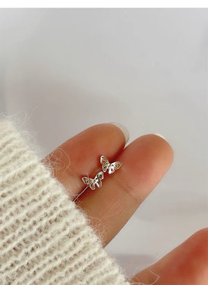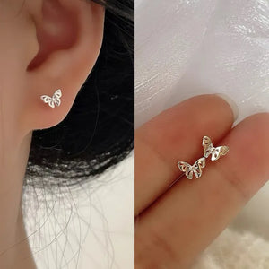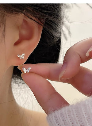 These studs feature dainty butterfly motifs, crafted from high-quality 925 sterling silver. The intricate design and polished finish create a playful yet elegant look, perfect for adding a touch of natural beauty to any outfit.