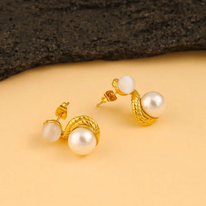 This message only appears in theme editor.The PearlOpal Earstuds are a delicate blend of classic pearls and opalescent accents. Gold-plated with an anti-tarnish finish, these earrings are a graceful choice for elevating any outfit.