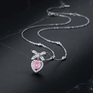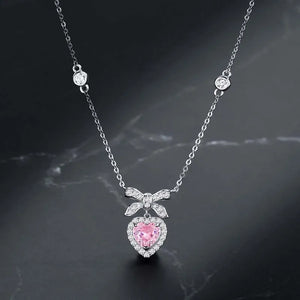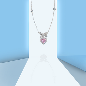 This message only appears in theme editor.Reveal your romantic spirit with our Pink Heart Bow Neckpiece in sterling silver – a tender fusion of love and style. This necklace boasts a charming heart-shaped pendant adorned with a playful bow accent.