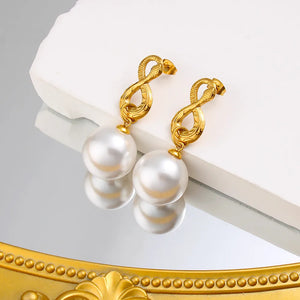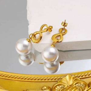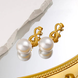 This message only appears in theme editor.A fusion of mystique and elegance, the Serpfinity Pearl Earrings feature a serpent-inspired infinity design gracefully intertwined with lustrous pearls. These gold-plated beauties embody strength and sophistication, making them a statement piece for any jewelry lover.