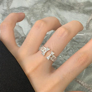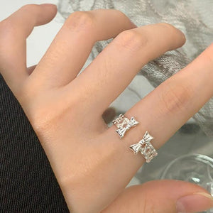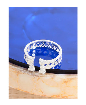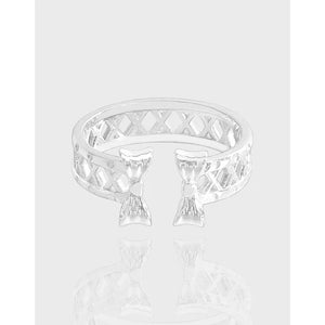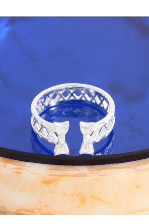 Featuring two bow-shaped accents on a polished 925 sterling silver band, this ring is a delightful accessory for both casual and formal occasions.