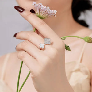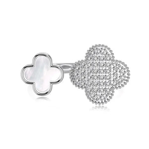 This set features two rings, each adorned with a delicate four-leaf clover motif, crafted from 925 sterling silver. The duo of rings can be worn together or separately, offering versatility in styling. The clover, a symbol of good fortune, makes these rings a thoughtful gift for someone special or a lucky charm for yourself.