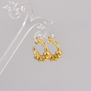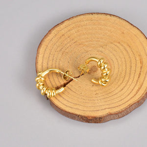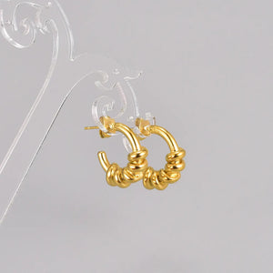 These hoops feature a twisted design, intricately crafted from 18K gold-plated 304 stainless steel. The unique twist adds texture and dimension, making these earrings a perfect choice for those who appreciate contemporary elegance.