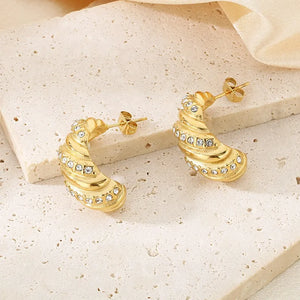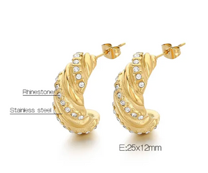 These studs feature a croissant-shaped design, plated with 18K gold over 304 stainless steel. The textured finish and vintage-inspired shape make them a sophisticated addition to any jewelry collection. Perfect for adding a touch of Parisian elegance to your look.