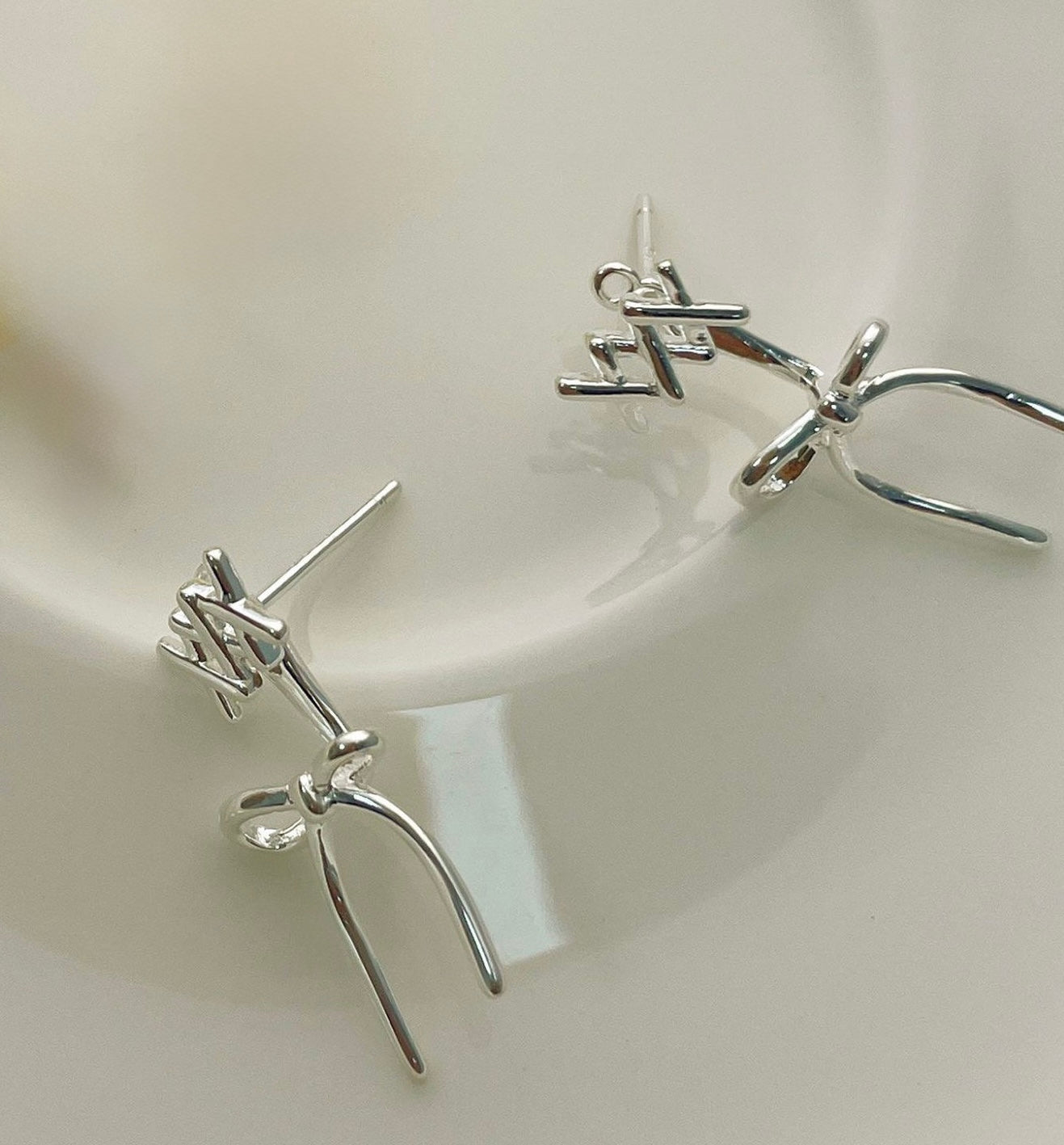 The Silver X-Bow Ear Studs bring a bold twist to minimal design, blending sharp angles with a hint of softness. Crafted in polished silver, the unique crossed bow silhouette makes a subtle yet striking statement.